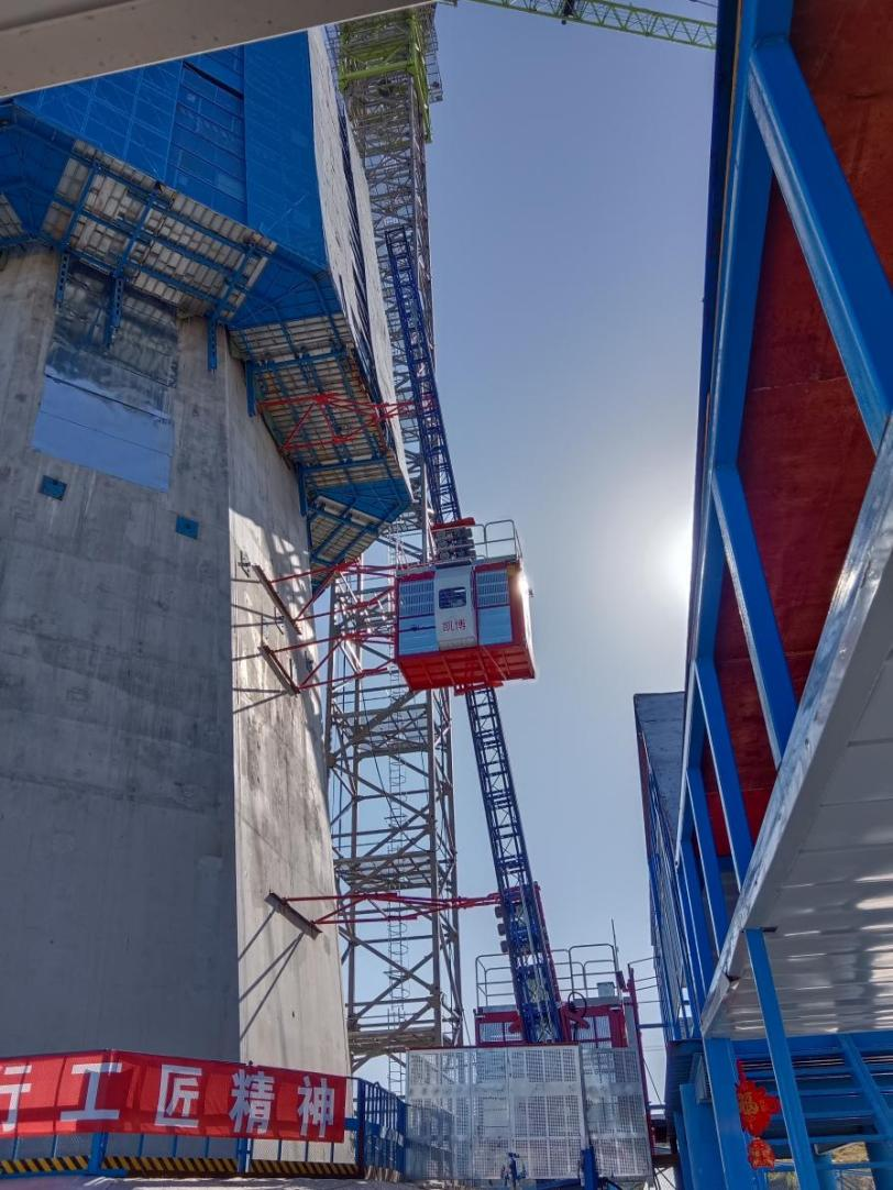 廊坊凱博建設(shè)機械科技有限公司根據(jù)枝江百里洲長江大橋的外形和具體施工要求,提供了SC200型斜直兩用施工升降機設(shè)備。該型升降機適用于外立面呈異型或變斜度大的橋塔、煙囪等建筑物施工中,在不增加任何部件的情況下可滿足在不同斜度建筑物的使用要求,能做到在0~15°之間任意變換角度,具有良好的適應(yīng)性。