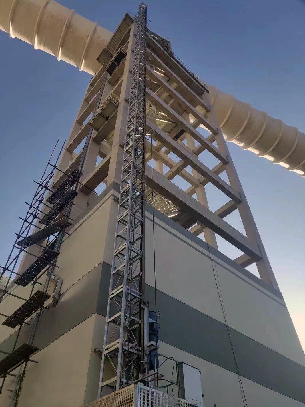 廊坊凱博建設機械科技有限公司(以下簡稱:凱博科技)是中國建研院下屬北京建筑機械化研究院有限公司的全資子企業(三級中央企業),齒輪齒條式工業升降機在具有挑戰性的環境下也能為用戶提供安全可靠、運行高效的垂直升降設備,為工業設備的維護、維修提供快速通道。京秦熱電項目是國家鼓勵發展的熱電聯產項目、是城市集中供熱民生工程項目、是促進京津冀協同發展典型的傳統產業轉型升級項目。凱博科技提供了兩臺SC100煙道CEMS平臺工業升降機,為檢測人員到達煙氣監測平臺提供便利。